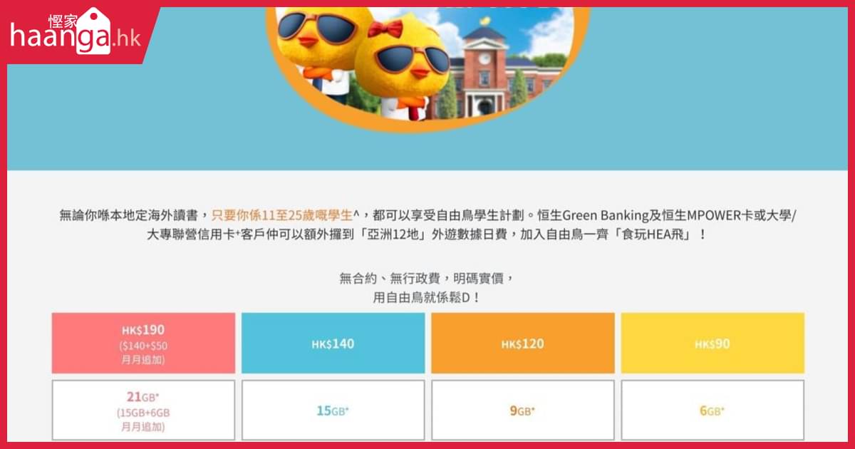 自由鳥birdie Data Plan X 恒生信用卡 學生獨家優惠 香港堅慳家網購慳人包