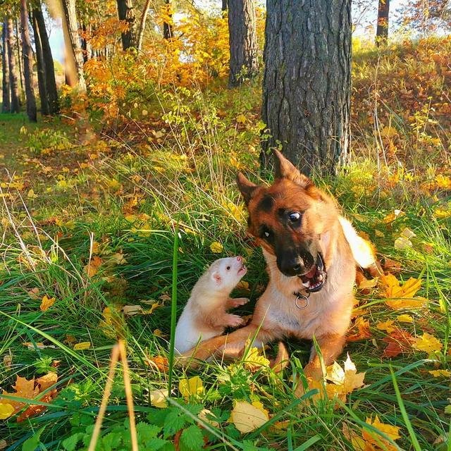 跨种族的纯美友情 德国牧羊犬与雪貂成不可分割的好朋友 快资讯